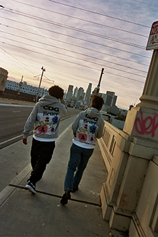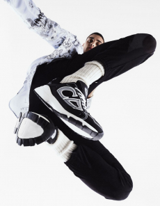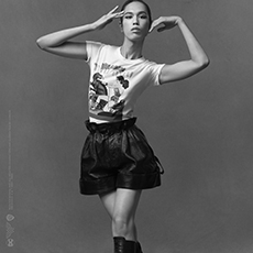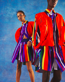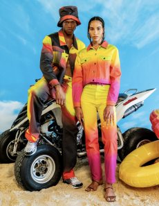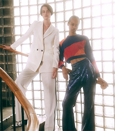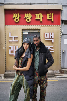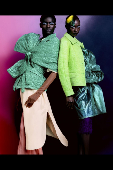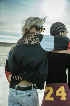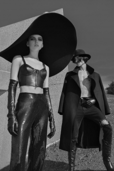 Both models are playing with the concept of opposites, pairing and simultaneously contrasting influences, ideas and cultural currencies, personifying perfectly the concept of the exchange.