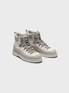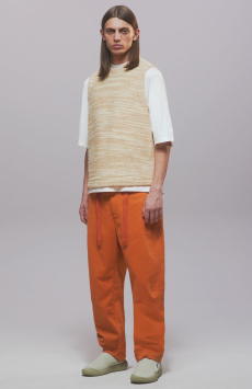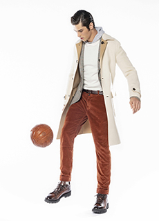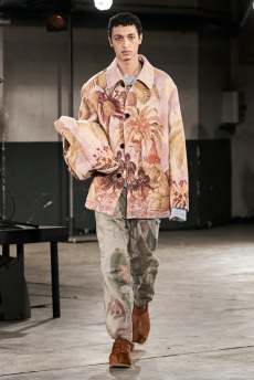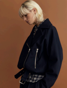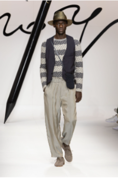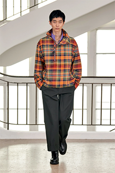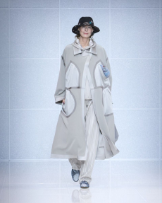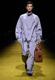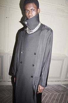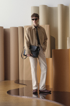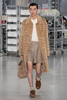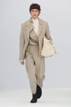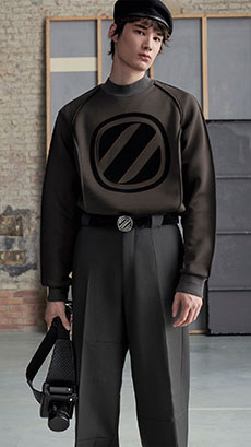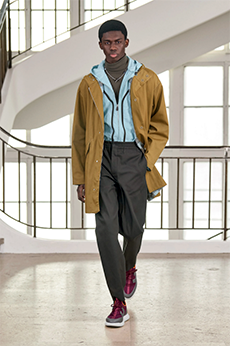 Fabric research is just an added value to a proposal that puts quality first. Boiled wool, bonded leather and cotton to provide protection and create incredibly à la mode oversized shapes. Fisherman-style knitwear is crafted in chunky constructions and zipped closed with ring pulls to be functional and masculine at the same time. The color palette varies from off-white to burgundy and olive green passing through navy shades.