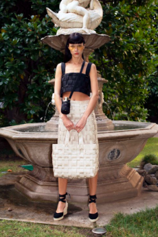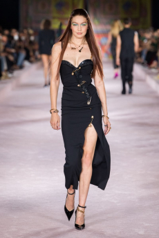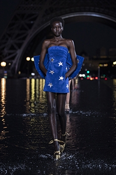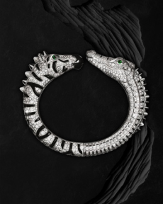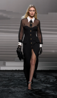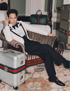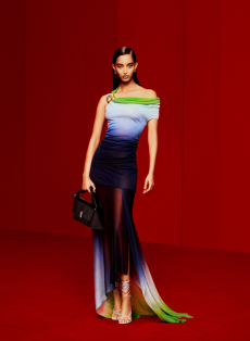 Heritage returns as provocation. The Bamboo 1947 bag, re-proportioned yet eternal, and the Horsebit loafer, cloaked in monogram, are recast as symbols of continuity and defiance. Flora blooms anew — in its classic palette and a nocturnal incarnation — while menswear revels in glamour with transparent bodycon sets and swimwear tailored to black tie precision.