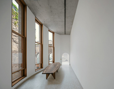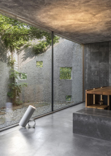 From the outside, the building reads like an architectural interruption. Unapologetically brutalist. Grey, grounded, heavy with presence. Inside, the narrative sharpens. The two-level space is built almost entirely from precast concrete - not used sparingly, not softened, not hidden. Floors, ceilings, walls: all cast in the same material language. It’s not warm. But it’s honest. And it’s striking.