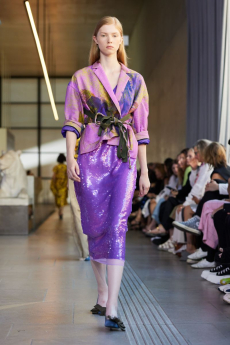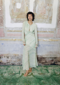 The designer’s love for accessory research once again was expressed with the beautiful statement jewellery in metal and enamel, together with the large oversized bags with wide straps and graphic knots. The asymmetric shades matching the floral deconstructed dresses and creating a further contrast to the soft organic feel of the whole collection gave the perfect youthful accent. We see a confident woman, she is intuitive and optimistic. No matter what.