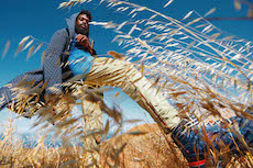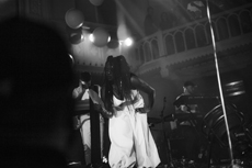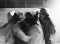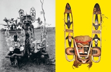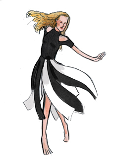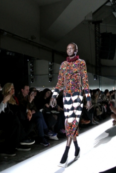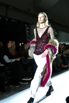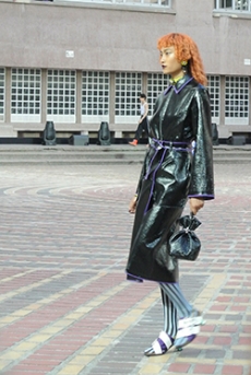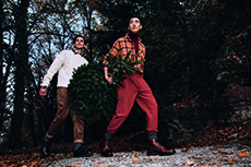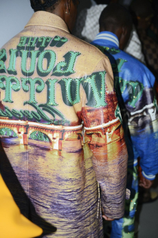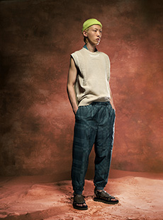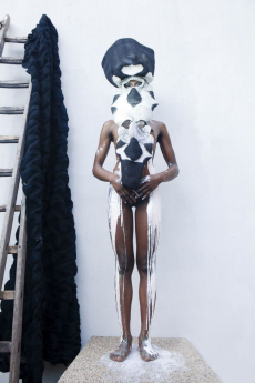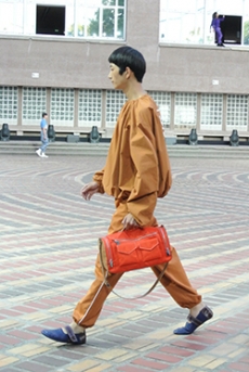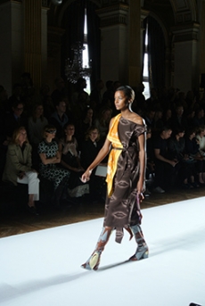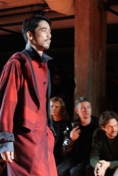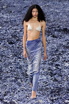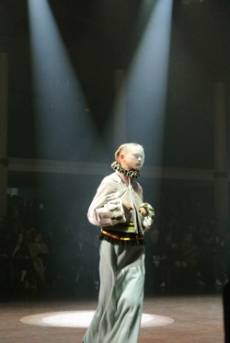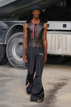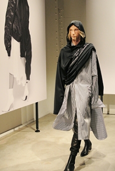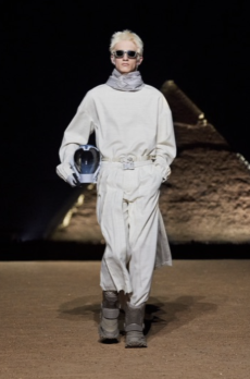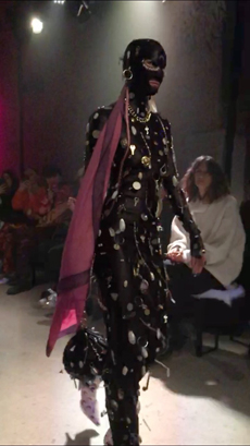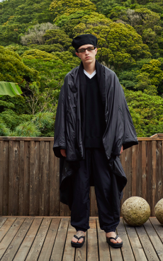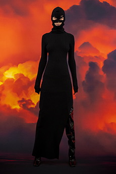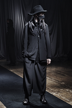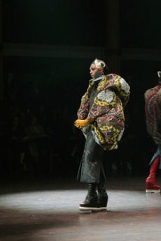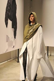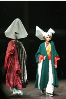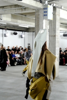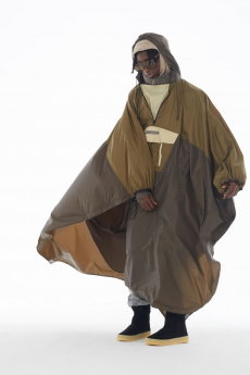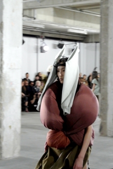 Sweatshirts and tees wrapped around the head, mimicking early ritual ceremonies. Coats, skirts, sleeveless jackets layered and twisted over the body recalling sacred costumes.