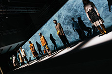 Imagine the backstage of a show brought on stage, in the spotlight, able to witness it at 360°, as in Walter Gropius’s Total Theatre: from the make-up to the models line-up, from the food banquet to the backstage photographers roaming around, from the seamstress fixing the last detail seconds before the start to the laughs between models.