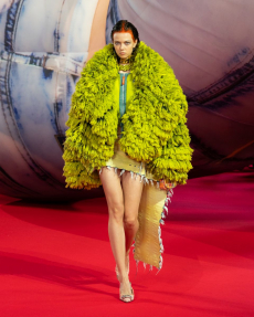 A powerful woman who is not afraid to show off her girly femininity. Miuccia Prada knows how to energize a tired crowd at the end of an intense fashion week calendar. It was all about that: being positive, energetic, alive. Wrapping oversized fuzzy coats, at times embellished with bejewelled belts, but also matching furry caps, and obviously the spectacular portfolio of accessories to give the final blow. It’s pure glamour, a bit 40s, a bit 70s. It’s Miu Miu on the nth degree and we cannot but love it.