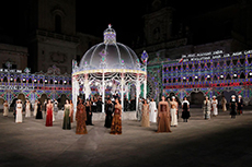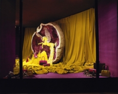 “The spectator is caught under a cloudy or a starry sky, surrounded by ocean waves or masses of people running towards him, while he is entranced by the dramatic actions of the central round arena. The division between acting and the audience no longer exists. Words, light and music no longer have a set place […] The director alters position and spatial forms and mercilessly subjects the audience to the dynamics of his imaginations”.