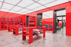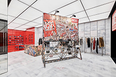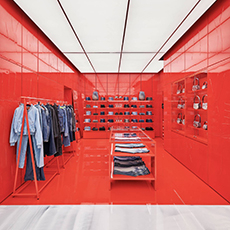 At the centre of the ground floor: a deep red sculptural installation, referencing Diesel’s biscotto logo, distorted by anamorphic design and optical illusion. It holds the denim - the brand’s foundation, reimagined. The piece isn’t decorative. It commands the room. It’s a reminder that Diesel’s history is always close, even when the brand is pushing forward.