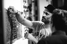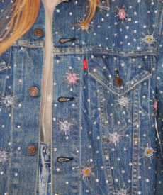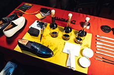 During the event, Baseman, gave attendees a sneak peek of the collection’s mood, hand-painting three one-of-a-kind motorcycle jackets.
