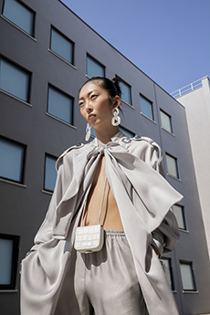 Shoes chart the day’s passage: sneakers and platforms carry the morning rush, ballet flats trace the afternoon’s quieter pace, sculptural heels claim the night. Craftsmanship becomes language — crocheted leather fringes, braided knots, tubular weaves — ancient techniques reimagined into modern gestures. Each detail, tactile and alive, transforms heritage into contemporary poetry.