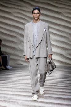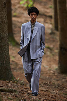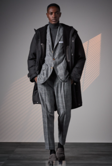 Adventurers and explorers’ outfits that combine performance and functionality with Boss’ key foundations: precise cuts and construction. The modern traveller wardrobe will be composed of wider 80s silhouettes mixed with slimmer, modern cuts and long and short designs. Love for details is never forgotten by the brand that for this collection added a touch of maritime influence in pea coats and duffels secured with buckled straps and chunky fastenings in the style of nautical equipment.