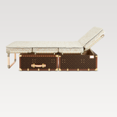 True to Louis Vuitton’s origins, Coddington embraces the art of packing. An exclusive line of plum-colored foldable nylon bags, including a Keepall that flattens completely, demonstrates her mastery of space and function. The highlight: her secretary trunk, inspired by the historic Stokowski trunk, outfitted with drawers, an easel, and even a nook for her cats.