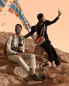 A well-balanced blend of feminine and masculine elements that remain classic and chic are the focal points of the campaign. Two girls become twins by dressing identically and a boy plays fashion chameleon by rocking a formal and a streetwear look in a Mars-like landscape. Pair the adventurous nature of the above with the tightly cropped portraits of Givenchy's personality gang and you are given the impression that, although they appear different they do in fact to belong to the same style-savvy tribe.