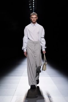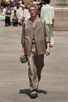 This is essentialism that refuses to be austere. It is a study in tensions — firmness and fall, line and fluidity, the insistence of form made supple — where purity becomes a universe rather than a limit, and every seam reads like a sentence in Albert Kriemler’s deliberate, lyrical grammar.