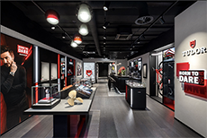 The concrete is countered by exacting detail. Diesel’s seasonal collections for men and women are spaced out in a way that feels more gallery than retail. There’s a discipline to the layout. A control of rhythm. Nothing shouts, but everything is meant to be seen. Even touched.