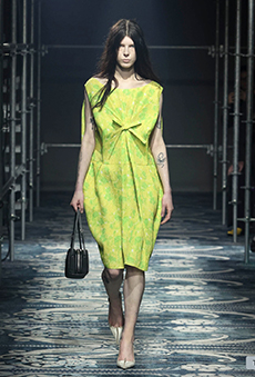 Miuccia Prada is not new to strong statements during dark times like the current political atmosphere. And she does it in the most dramatic and fun way we have known her for. For Fall Winter 2017 Miu Miu’s girl is covered with fake fur of all the possible sorbet colours: lemon, papaya, green apple, vanilla, tangerine. Mix-matched with sultry embellished silk gowns in soft powder pink and multicolour sporty striped knitwear.