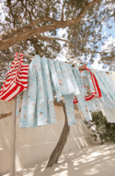 Coddington also reimagines the wardrobe of a seasoned traveler. Midi dresses carry signature House prints alongside exclusive mice-and-cat motifs, while her iconic pyjamas are redefined as chic daywear. Comfort remains central: flat sandals, tennis shoes, and soft layers of cashmere, silk, and cotton designed for effortless journeys.